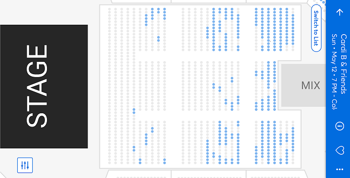 Next, you can select your seats by either choosing them from a list of pre-selected seats, or actually selecting specific seats from the seating chart. If you are purchasing a solo ticket, you must select your seat wisely as Ticketmaster will not allow you to purchase a single seat if it will leave an empty space between another seat.
