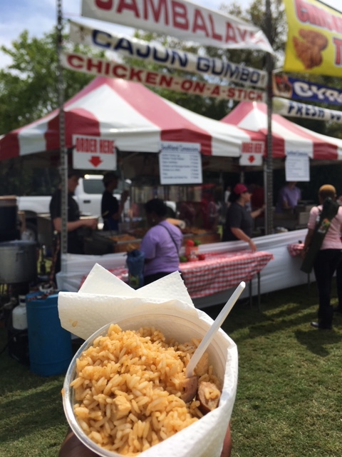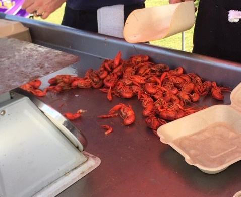 The music started playing and the cooks started slaying! The main food that everyone seemed to charge for was the boiled crawfish served by Smilin’ Jack’s Cajun Catering. The crawfish were weighed and served in trays which cost $14.00. Although the quantity seemed to be a bit less than the years before and the price was raised, the taste did not disappoint – the crawfish were juicy and nicely spicy.