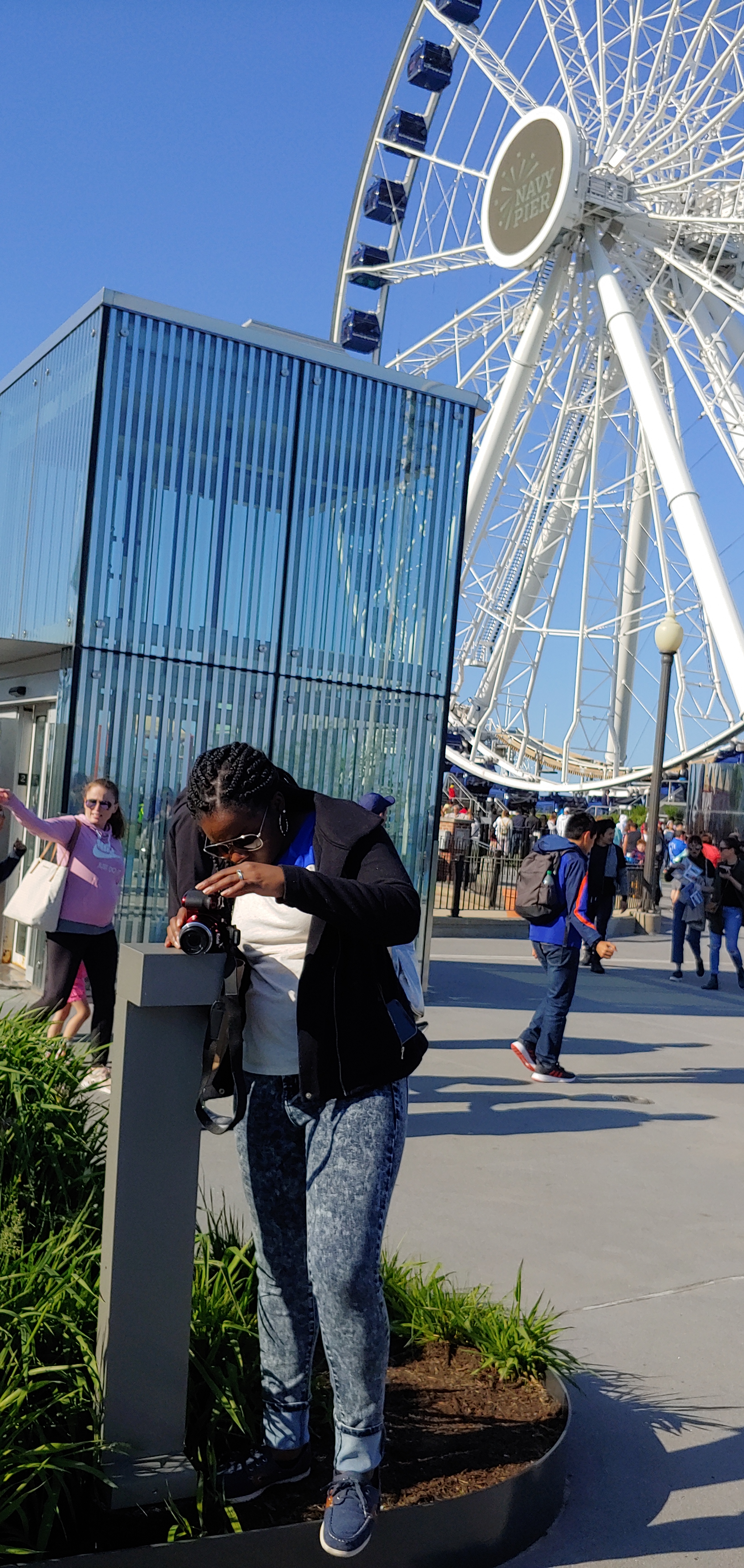 Once we left the museum, we rode back to the downtown area to walk around Navy Pier. There were lots of people there. We did not stay too long but it was nice to scroll through, see the Centennial Wheel, and people watch.