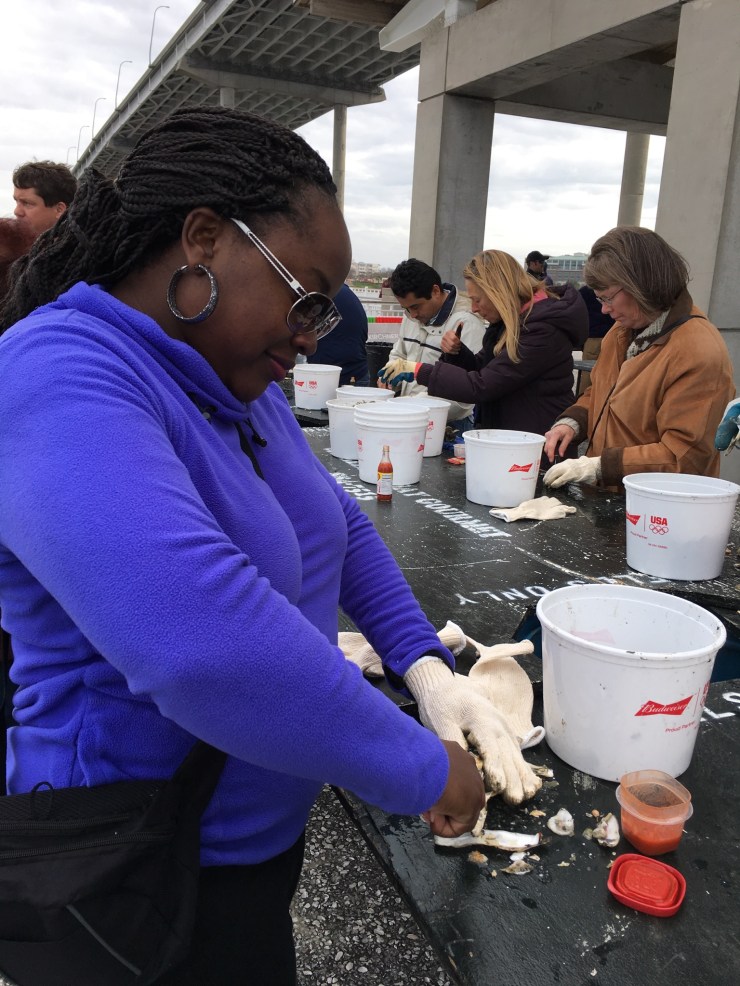 On January 12, 2019 we attended Shuckin’ on the Cooper which is an annual oyster roast hosted by Charleston County Parks and Recreation. The event was located on the Mount Pleasant Pier just right under the Arthur Ravenel bridge. The oysters were catered by Charleston Bay Gourmet and were served cluster style.