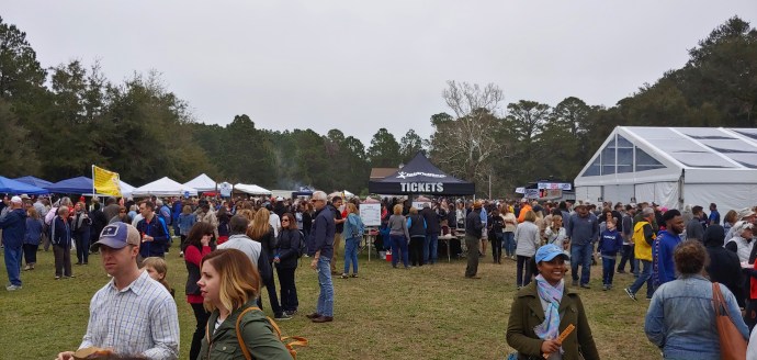 The weather was perfect for eating oysters, although more chilly than we would have preferred. The best part about this oyster roast, aside from the oysters themselves was the hospitality of all of the sponsors. There were plenty of FREE oyster knives and gloves to grab – but expected to be returned after using. We’ve never been to an oyster roast where they provided both gloves and oysters knives without a price tag. We thought this was very thoughtful.